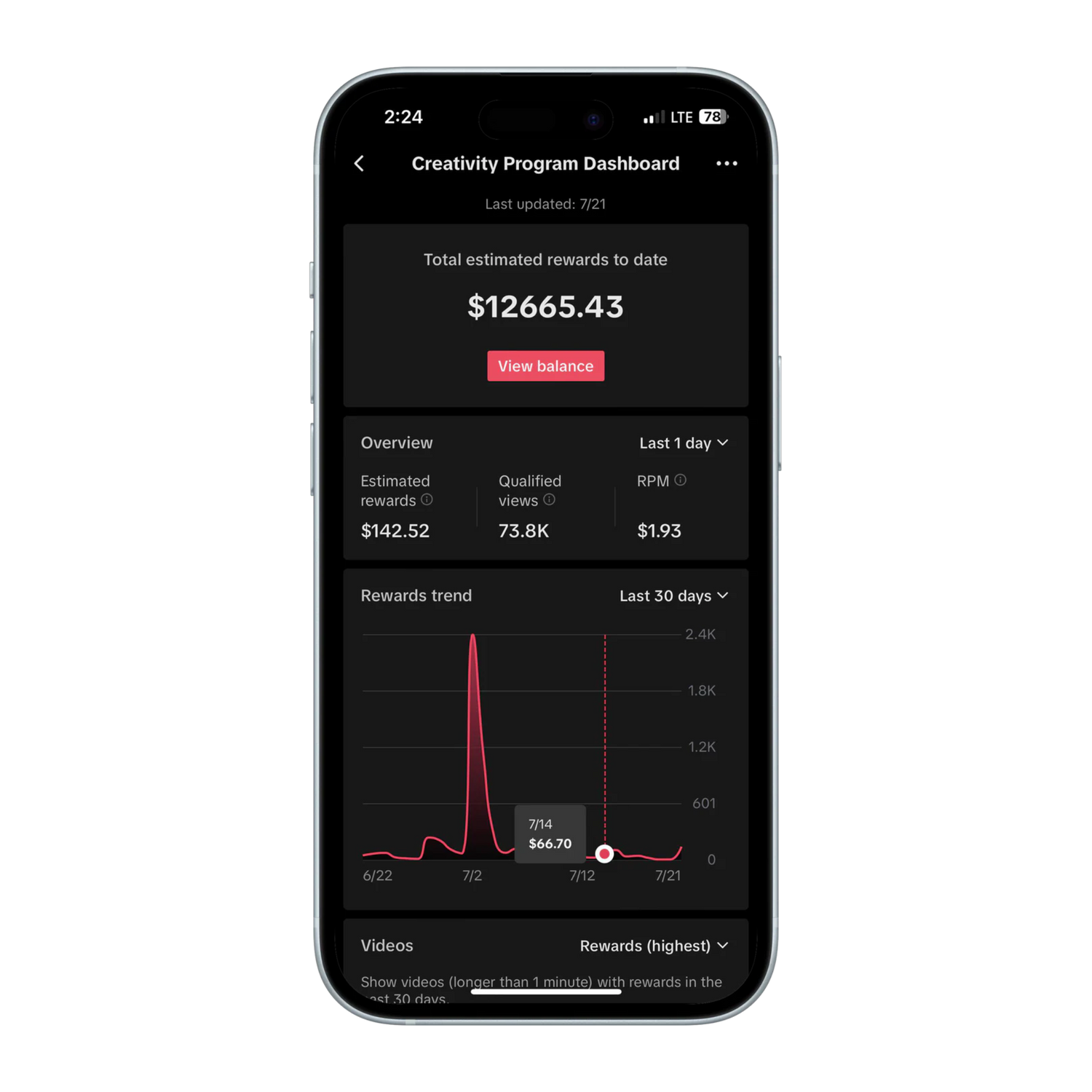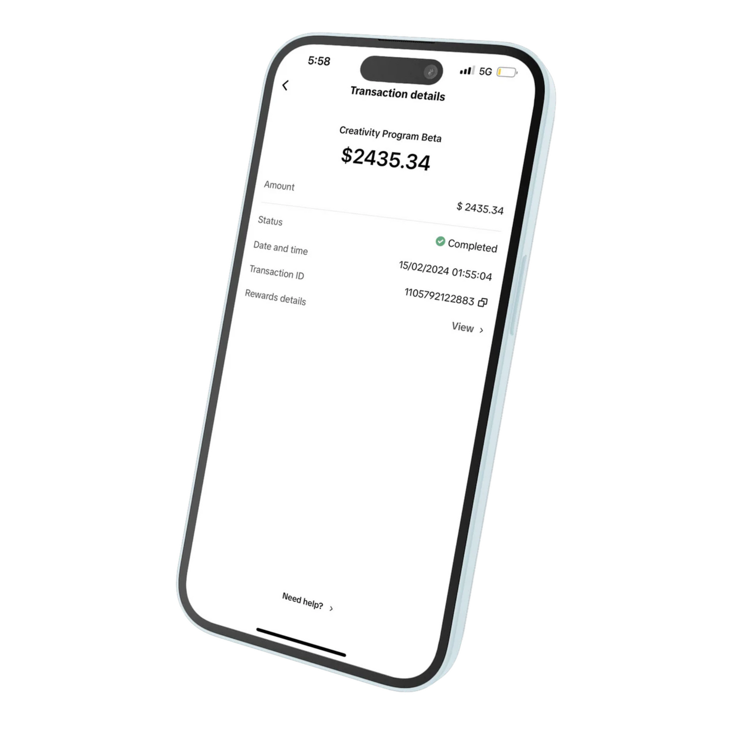 Once you have the account, you simply connect your own PayPal to the Creator Rewards dashboard, and you're good to go. Fast, simple, and hassle-free.